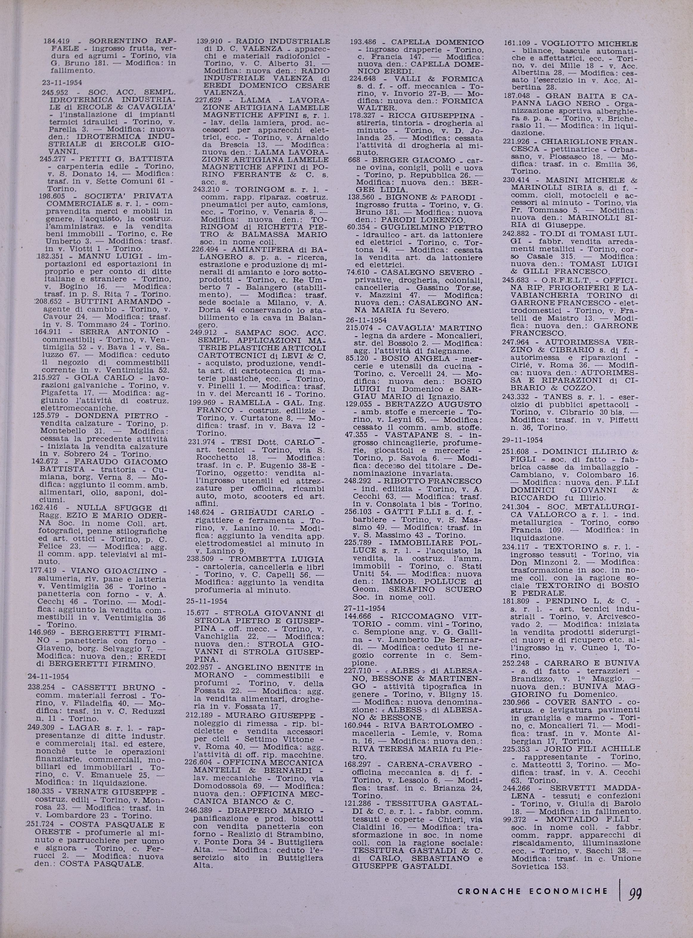 Scansione di un periodico del 1954-12. Tratta da: "Cronache Economiche", volume 144, (pag. 98), edito da "Camera di Commercio Industria e Agricoltura di Torino". Pagina della sezione "Movimento anagrafico", novembre 1954, sottosezione "Modifiche". Riporta in data 1954-11-23 al n. 162.416: "NULLA SFUGGE di Ragg. EZIO E MARIO ODERNA Soc. In nome Coll." per "art. fotografici, penne stilografiche ed art. ottici", Torino, piazza C. Felice 23. Modifica: aggiunge il "comm. app. televisivi al minuto".
