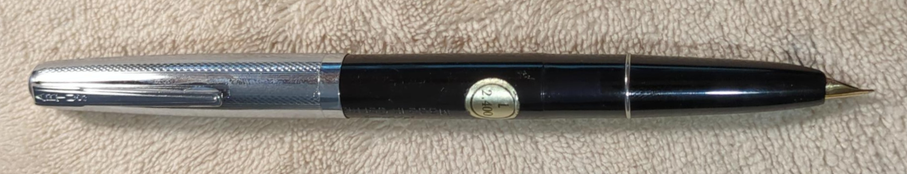 Foto di una penna Artus (un marchio della Lamy). Modello: Artus 51f. Caricamento a stantuffo. Realizzazione in resina plastica nera. Modello a pennino coperto (misura FK) e cappuccio in metallo cromato. Contributo di Alessandro, (utente forum AlexO).