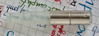 Photo of a pen produced by Aurora. Model: 2cart. Filling system: cartridge filler. In black plastic resin. Detail of filling system. Standard version.