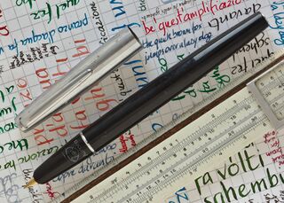 Foto di una penna Aurora. Modello: 2cart. Caricamento a cartuccia. Realizzazione in resina plastica nera. Versione ordinaria.