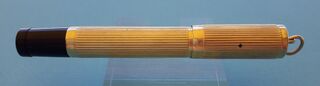 Photo of a pen produced by Nettuno. Model: Nettuno 500. Filling system: safety. With orizontal lined gold rolled overlay. One of the oldest production models, lady version.