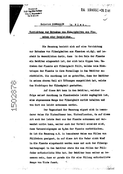 Brevetto per un meccanismo per prelevare inchiostro da una boccetta. Ceduto in Italia alla Kores che ottenne l'equivalente privativa industriale N. 21684.