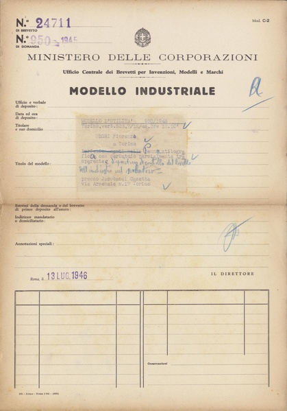 attuale22:01, 31 ago 2025Miniatura della versione delle 22:01, 31 ago 20254 370 × 6 250, 8 pagine (4,09 MB)Piccardi (discussione | contributi)== Dettagli == {{InfoModello |Numero=24711 |Data=1946-07-13 |Richiesto=1945-12-07 |Titolare=Fiorenzo Negri |Tipo=di utilità |Titolo=Penna stilografica con serbatoio parzialmente trasparente e dispositivo di controllo del livello dell'inchiostro nel serbatoio |Domanda=950 |Ufficio=Torino |Fonte=[https://tecadigitaleacs.cultura.gov.it/media/ricercadl?rictree=MINISTERO+DELL%27INDUSTRIA%2c+DEL+COMMERCIO+E+DELL%27ARTIGIANATO%2fUFFICIO+ITALIANO+BREVETTI+E+MARCHI%2fArchivio+generale%2fModelli%2fBr...