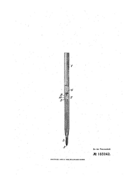 Brevetto di un porta mine. Estensione del brevetto n° DE-176702. Stessa invenzione di nº FR-06524E. Stessa invenzione di nº DK-09918. Stessa invenzione di nº GB-190616715. Stessa invenzione di nº CH-37618. Stessa invenzione di nº AT-31185. Stessa invenzione di nº CA-104033.