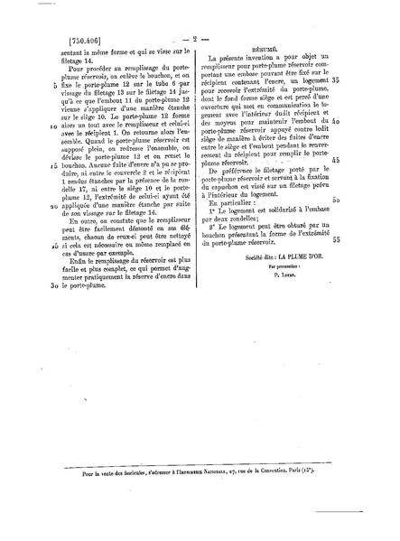 current11:54, 4 January 2013Thumbnail for version as of 11:54, 4 January 20131,295 × 1,752, 3 pages (147 KB)Piccardi (talk | contribs){{PatentInfo |Assignee=Société Anonyme La Plume d'Or |Country=FR |ApplicationNum=750406 |ApplicationDate=1932-05-06 |PatentNum=750406 |PatentDate=1933-08-10 |PriorityDate=1932-05-06 |Titolo=Remplisseur pour porte-plume réservoir ou analogues |Marca...