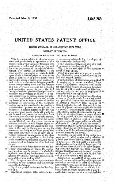attuale17:52, 21 mar 2021Miniatura della versione delle 17:52, 21 mar 20211 159 × 1 704, 8 pagine (617 KB)Piccardi (discussione | contributi){{PatentInfo |Assignee=Joseph Wallace |Country=US |ApplicationNum=463468 |ApplicationDate=1930-06-24 |PatentNum=1907626 |PatentDate=1932-03-08 |PriorityDate=1930-06-24 |Titolo=Display apparatus |Marca=Inkograph |Descrizione=Apparecchio di visualizzazi...