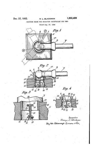 | current | 23:00, 25 October 2013 | 1,159 × 1,704, 4 pages (192 KB) | Piccardi (talk | contribs) | {{PatentInfo |Inventor=Horace L. Blackman |Assignee=Pen Desk Set Company |Country=US |ApplicationNum=130116 |ApplicationDate=1926-08-19 |PatentNum=1892499 |PatentDate=1932-12-27 |PriorityDate=1926-08-19 |Titolo=Securing means for receiving receptacles ... |