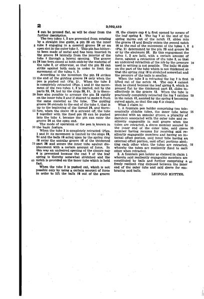Brevetto per il meccanismo di penna rientrante usato per la Pullman e per le Uneman. Priorità dal brevetto austriaco. Stessa invenzione di nº AT-143783. Stessa invenzione di nº GB-445752. Stessa invenzione di nº FR-784223.Stessa invenzione di nº CH-186582. Stessa invenzione di nº CA-366351.