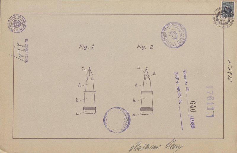 Privativa industriale per un modello di fabbrica della Zemax. Testo descrittivo della registrazione: "Penna stilografica con pezzo di prolungamento tronco conico per l'attacco del pennino".
