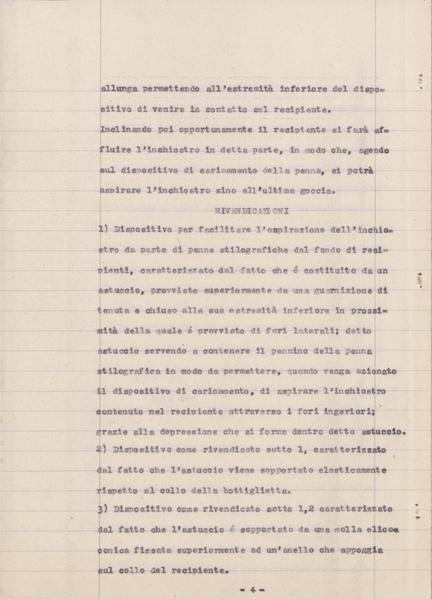 Privativa industriale per un modello di utilità. Testo descrittivo della registrazione: "Dispositivo per facilitare l'aspirazione dell'inchiostro da parte di penna stilografica del fondo di recipienti".
