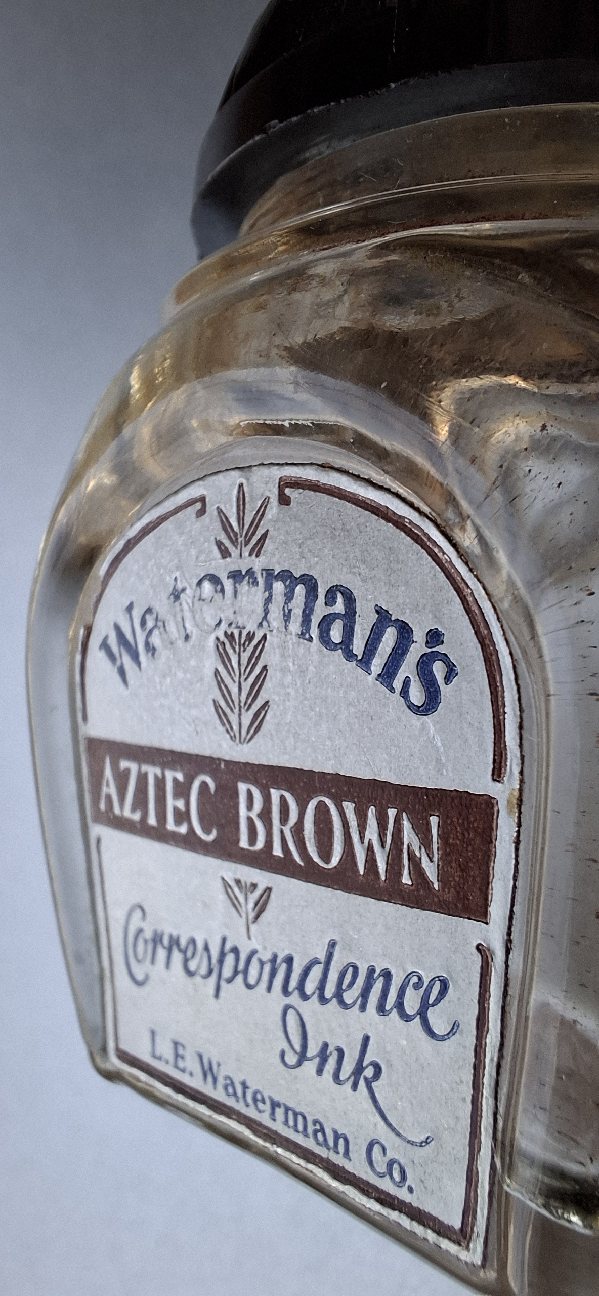 Photo of an ink bottle produced by Waterman. A Correspondence Ink ink bottle.