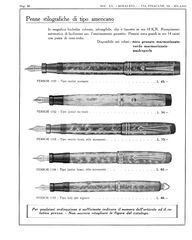 Scanning of a catalog page from Boralevi dated 1933-11. Retouched by the author for a better sharpness. Date reported on another page. Catalog 1934.XII, N. 26, November 1933. Thirty-eighth page. Advertising for some Ferbor models, both flat-top and more streamlined (called 900 style) in colored plastic claimed to be bakelite but more probably beeing celluloid.