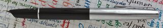 Foto di una penna Aurora. Modello: 2cart. Caricamento a cartuccia. Realizzazione in resina plastica nera. Versione ordinaria.