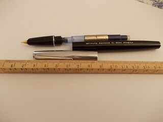 Foto di una penna Aurora. Modello: 2cart. Caricamento a cartuccia. Realizzazione in resina plastica nera. Contributo di Armando Dabbene (utente forum fountainpen.it A Dabbene).
