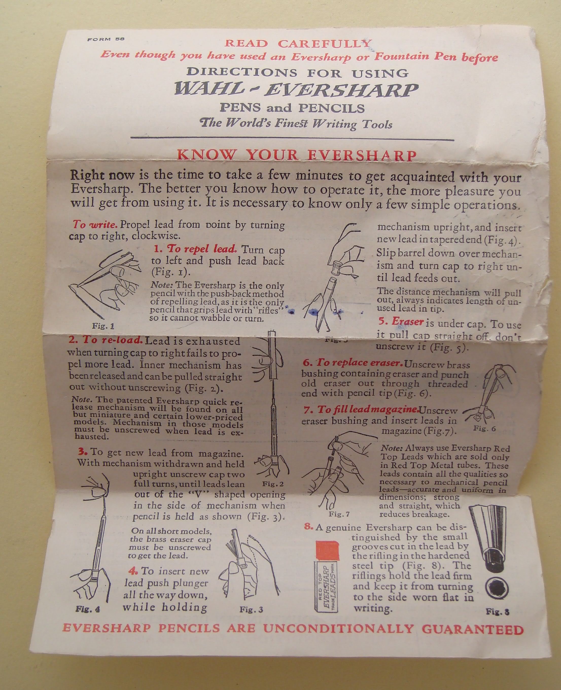Scansione di un foglietto di istruzioni della Eversharp