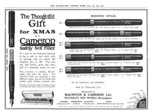 Il modello venne introdotto da Cameron nel 1916, sfruttando il brevetto (nº GB-101241) per il nuovo sistema di caricamento di cui si vantavano semplicità, sicurezza e stabilità.