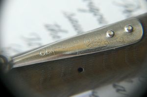 Questo tipo di fermaglio, mostrato nella figura a fianco, è caratterizzato da un montaggio sul cappuccio realizzato con due rivetti posti sulla parte superiore dello stesso. Questa è liscia longitudinalmente mentre lateralmente segue la curvatura della superficie del cappuccio in modo da aderirvi strettamente. L'uso della rivettatura rende robusto il montaggio, ma alquanto problematica la riparazione quando la clip si rompe, per sostituirla infatti occorre effettuare una delicata operazione di trapanatura dei rivetti.