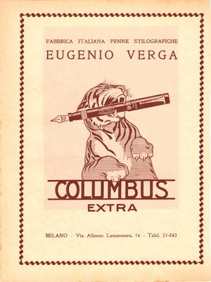 Sempre intorno al 1935 la Columbus introdusse una nuova clip a freccia, evidente imitazione di quella usata da Parker sulla Vacumatic, la nuova clip venne progressivamente utilizzata sui vari modelli prodotti dall'azienda, restando applicata però prevalentemente sui modelli di pregio marchiati Extra. Nel 1935 circa,[7] in conseguenza del buon successo commerciale ottenuto dalle sue penne, le attività dell'azienda si spostarono nella nuova sede di Via Lamarmora a Milano, dove i maggiori spazi consentirono di rispondere alle aumentate esigenze produttive.