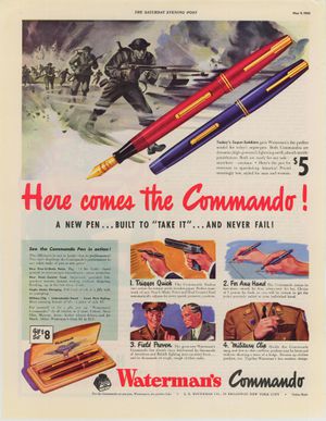 Il modello Commando venne introdotto dalla Waterman all'incirca nel 1941, durante la ristrutturazione della produzione effettuata a partire dalla Hundred Year, che vide il passaggio della produzione alla plastica. In quel periodo vennero prodotti, oltre alla Hundred Year che costituiva il modello di maggior pregio, dei modelli economici da 3.50$ e dei modelli di fascia intermedia da 5.00$.