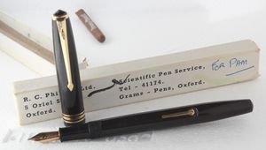 La penna è dotata di caricamento a levetta ordinario, la levetta ha una terminazione tonda su cui è stampigliato un logo formato dalle lettere CS in un rombo.