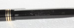 La penna era realizzata in celluloide. Clip e levetta sono in metallo dorato. Il pennino è in oro a 14 carati.