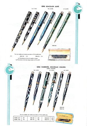 I modelli in ebanite, con entrambi i sistemi di caricamento, sono chiamati semplicemente Porte-plume Edac, distinti come Modèles safety e Modèles P.S.F. I modelli in celluloide sono invece denominati Marbroid per le versioni venature bianche, ed Edacolor per gli altri colori.
