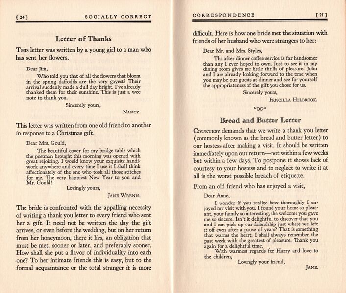 Scansione di un libretto Waterman datata 1929. Ritoccata dall'autore per una migliore nitidezza. Contributo di Giorgio (utente forum Musicus). Data riportata su un'altra pagina. Ventiquattresima e venticinquesima pagina. Libretto sulla corretta forma da adottare nella "corrispondenza sociale" (sia lettere che biglietti), tanto privata quanto di lavoro, come codificata dall’uso e dalle convenzioni negli Stati Uniti del 1929.