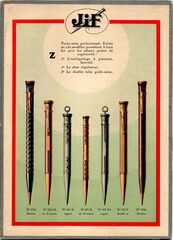 Scanning of advertising from JiF dated 1929. Retouched by the author for a better sharpness. Guess date, from similar ones with the same models. Advertising for different JiF pencils some of which bearing the same overlay used on Waterman pens: "Décor CA", "Décor D", "Décor X", "Décor FA", "Décor F".