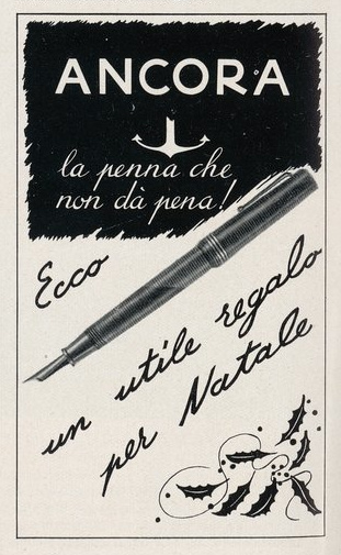 Scansione di una pubblicità Ancora datata 1938-12-18. Pubblicazione su: L'Illustrazione Italiana, anno LXV, n. 51, pag. XIV. Data dal reperimento della pagina su una versione archiviata della rivista. Pubblicata anche su: anno LXVI, N. 1 (1939-01-01), N. 3 (1939-01-15), N. 6 (1939-02-05), N. 51 (1939-12-17). Pubblicizza il modello Maxima.