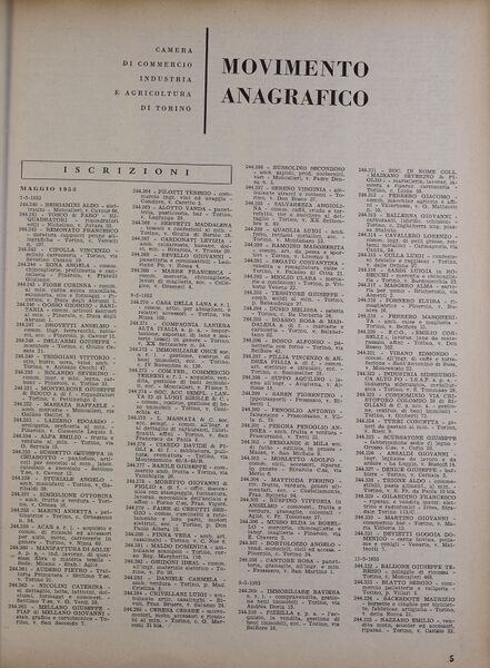 Scansione di un periodico del 1953-06. Tratta da: "Cronache Economiche", volume 126, (pag. 5), edito da "Camera di Commercio Industria e Agricoltura di Torino". Pagina della sezione "Movimento anagrafico", maggio 1953, sottosezione "Iscrizioni". Riporta in data 1953-05-07 al n. 244.242: "REMONATO FRANCESCO" per "doratura cappucci penne stilografiche", Torino, corso Vercelli n. 107.