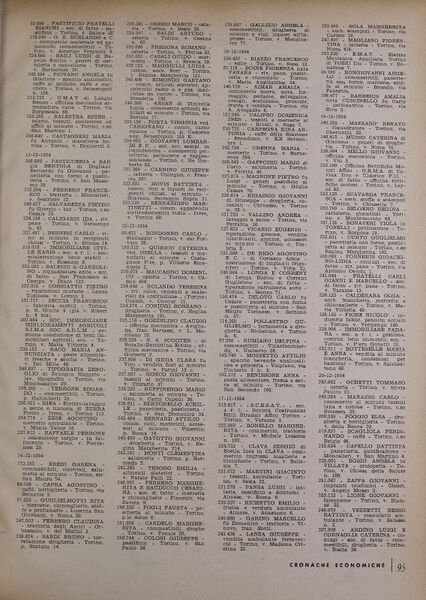 Scansione di un periodico del 1955-01. Tratta da: "Cronache Economiche", volume 145, (pag. 91), edito da "Camera di Commercio Industria e Agricoltura di Torino". Pagina della sezione "Movimento anagrafico", dicembre 1954, sottosezione "Cessazioni". Riporta in data 1954-12-18 al n. 138.192: "FIORE NICOLO'", come "industria fabbr. pennini acciaio", Torino, via Verolengo 140.