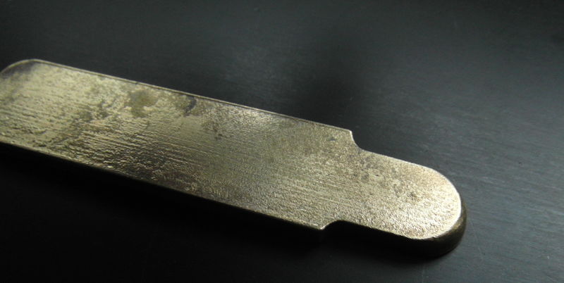 Attrezzo per facilitare l'apertura del bordo di un cappuccio di una laminata, in modo da consentire la separazione del rivestimento. Vista da sopra.