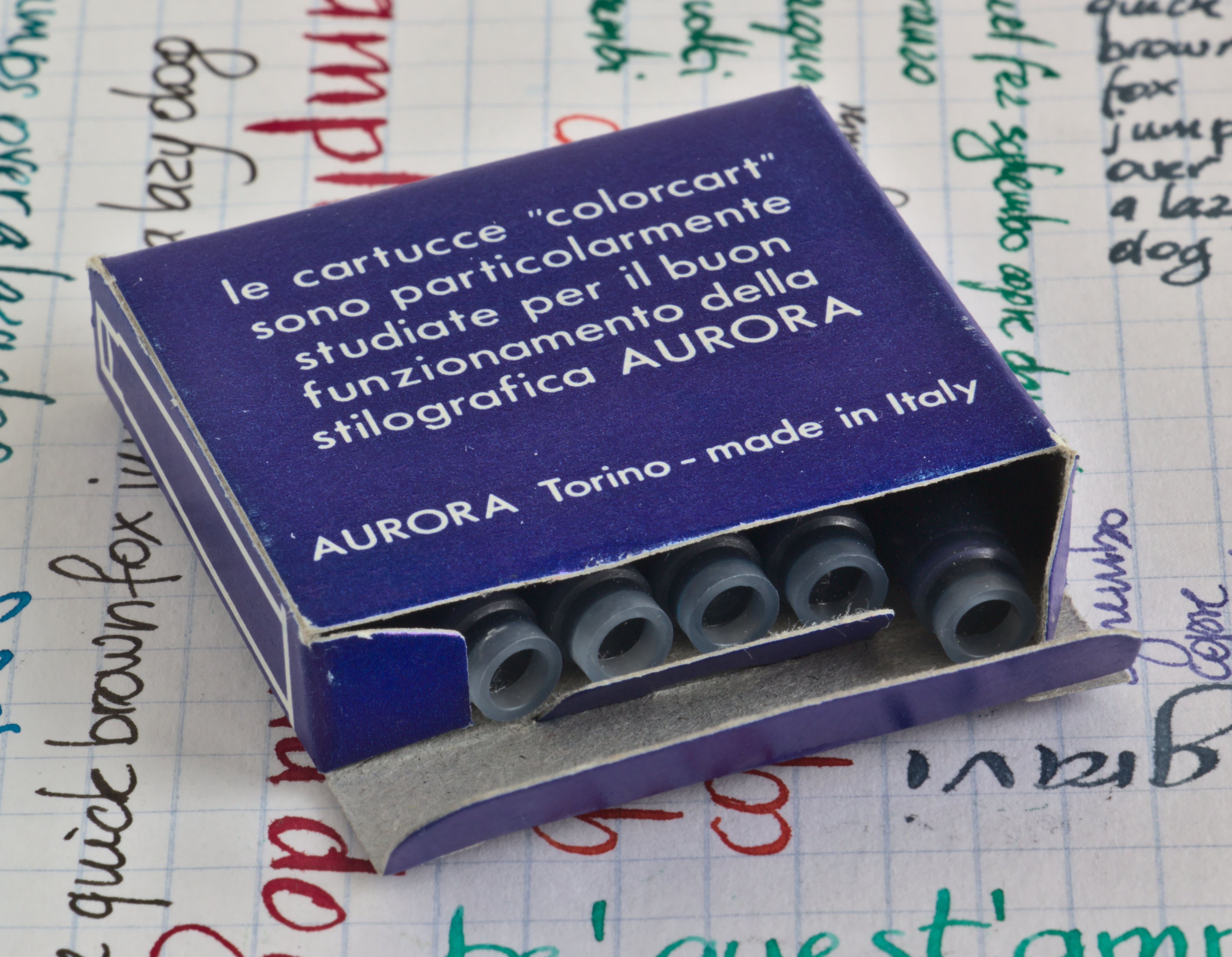 Foto di una scatola di cartucce Aurora. Scatola da 5 cartucce Colorcart.
