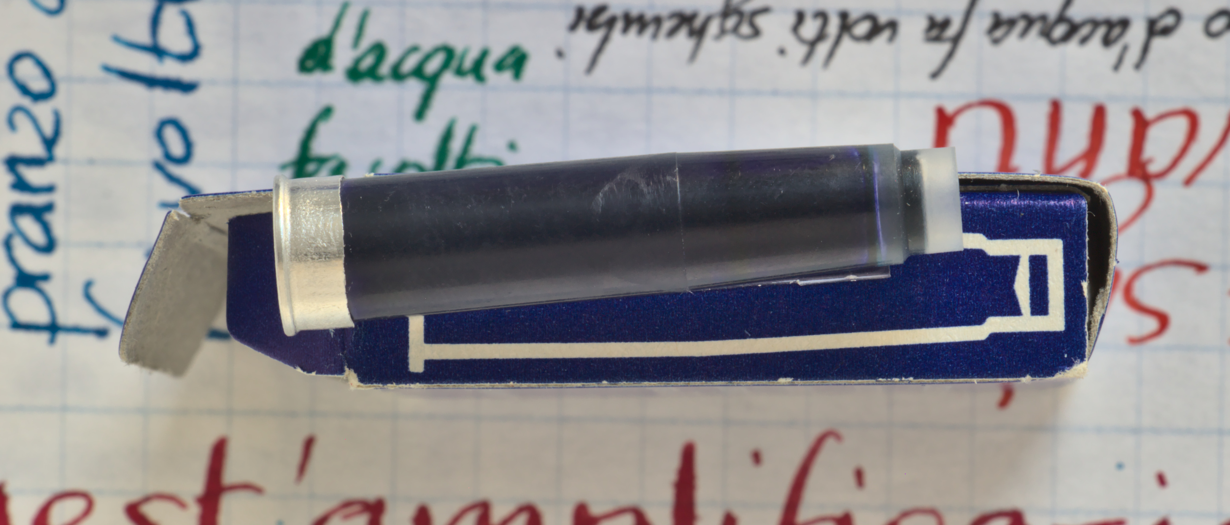 Foto di una scatola di cartucce Aurora. Scatola da 5 cartucce Colorcart.
