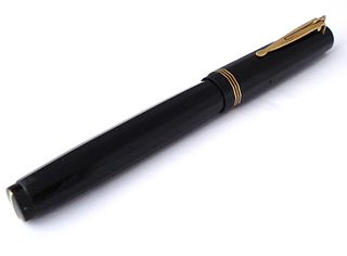 Photo of a pen produced by Aurora. Model: Novum. Filling system: back lever. In black celluloid. Medium size, first version, faceted.