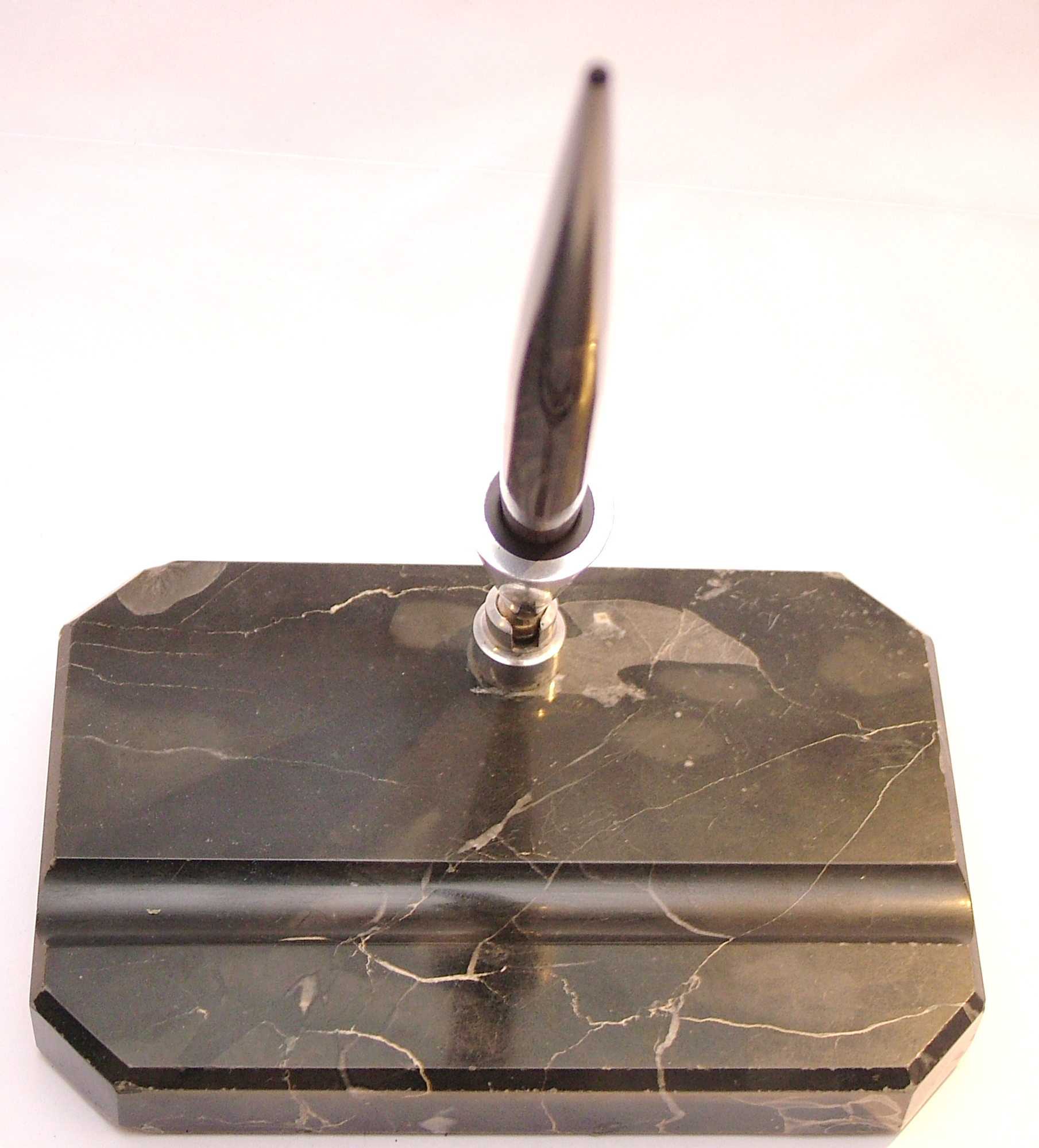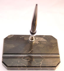 Photo of a desk pen produced by Columbus. Model: Columbus Extra 14. Filling system: lever filler. In striped brown celluloid.