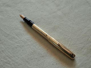 Photo of a pen produced by Columbus. Filling system: lever filler. With geometric pattern gold rolled overlay. Medium size.
