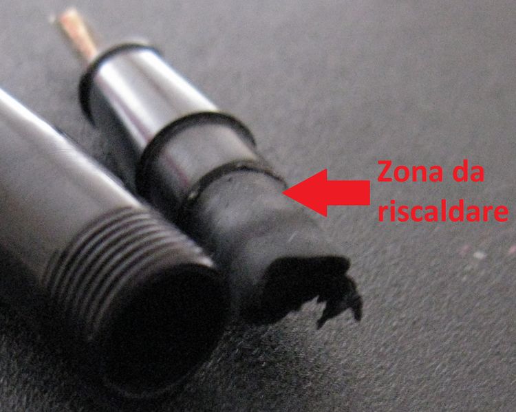 Zona da riscaldare per la rimozione del sacchetto |