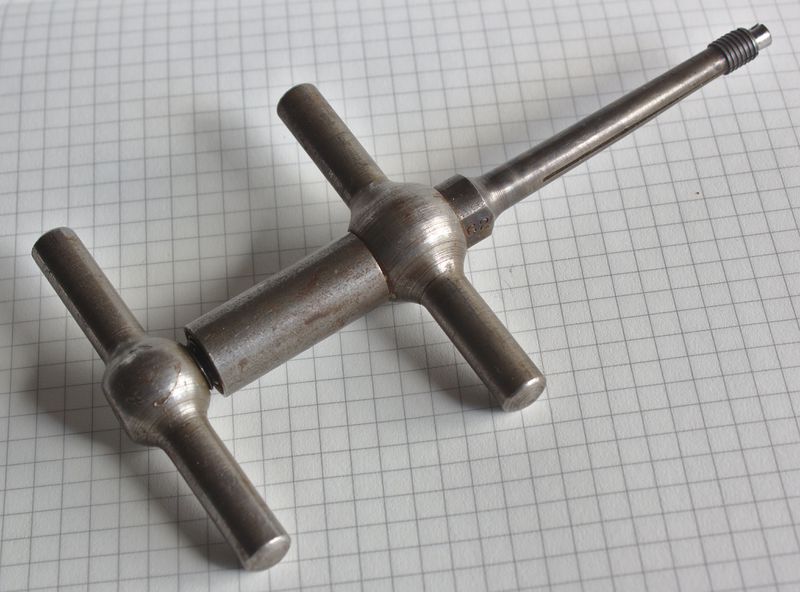 An inner cap extractor, closed, in the position used when it has to be inserted inside the inner cap.