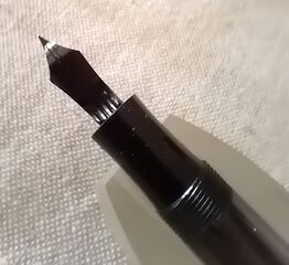 Foto di una penna Montblanc. Modello: Montblanc 234½. Caricamento a stantuffo. Realizzazione in celluloide nera. Versione di lusso con fermaglio e veretta identiche a quelle della serie 13x. Contributo di Fabrizio Falchi, (utente forum fountainpen.it fab66).