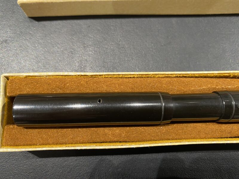 Foto di una penna Nettuno. Modello: Penna Nettuno Sicurezza. Caricamento a torsione. Realizzazione in ebanite nera. Modello dotato di una elaborata variante di caricamento a torsione. Contributo di Giuliano, (utente forum Giu1963).