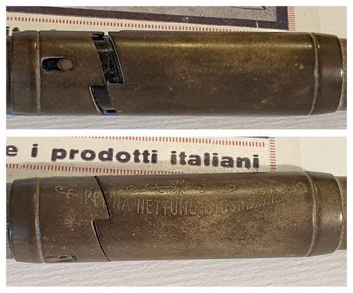 | attuale | 00:42, 6 ago 2025 | 1 714 × 1 423 (541 KB) | Piccardi (discussione | contributi) | == Dettagli == {{PhotoInfo |Marca=Nettuno |Modello=Penna Nettuno Sicurezza |Oggetto=pen |Particolare=filler |Contributo=MaBaskirotto |Riferimento=https://forum.fountainpen.it/viewtopic.php?t=31728 |Caricamento=twist |Materiale=ebanite |MatDesc_it=nera |MatDesc_en=black |Licenza=Cc-by-sa-3.0 |Note_it=Modello dotato di una elaborata variante di caricamento a torsione. |Note_en=A peculiar twist filler variant. }} |