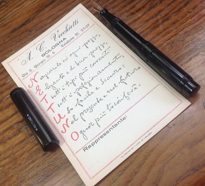 | attuale | 18:23, 1 set 2017 | 1 917 × 1 740 (910 KB) | Piccardi (discussione | contributi) | {{PhotoInfo |Marca=Nettuno |Oggetto=pen |Contributo=RobertoV |Caricamento=twist |Materiale=ebanite |MatDesc_it=nera |MatDesc_en=black |Licenza=Cc-by-sa-3.0 |Note_it=Modello dotato di una elaborata variante di caricamento a torsione. |Note_en=A pecu... |