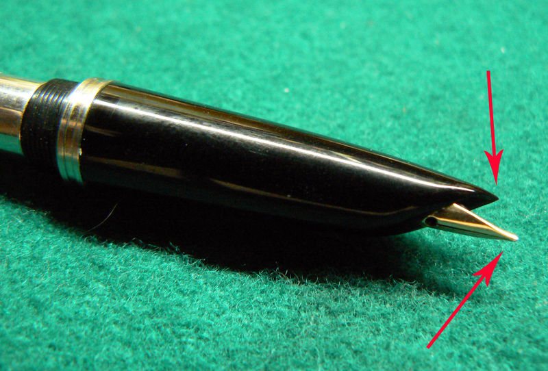 Illustration of the misalignment between the hood and the feeder/nib assembly in a Parker 51.