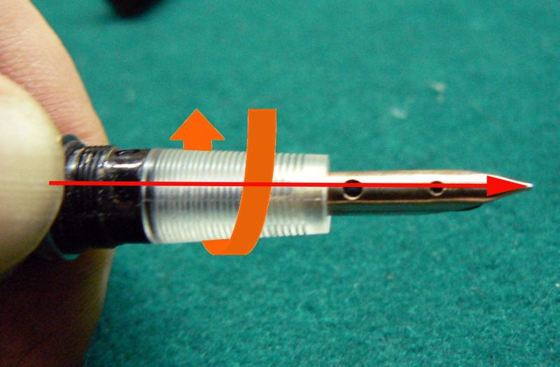 Diagram for positioning the feeder/nib assembly in a Parker 51 to allow subsequent alignment with the hood.