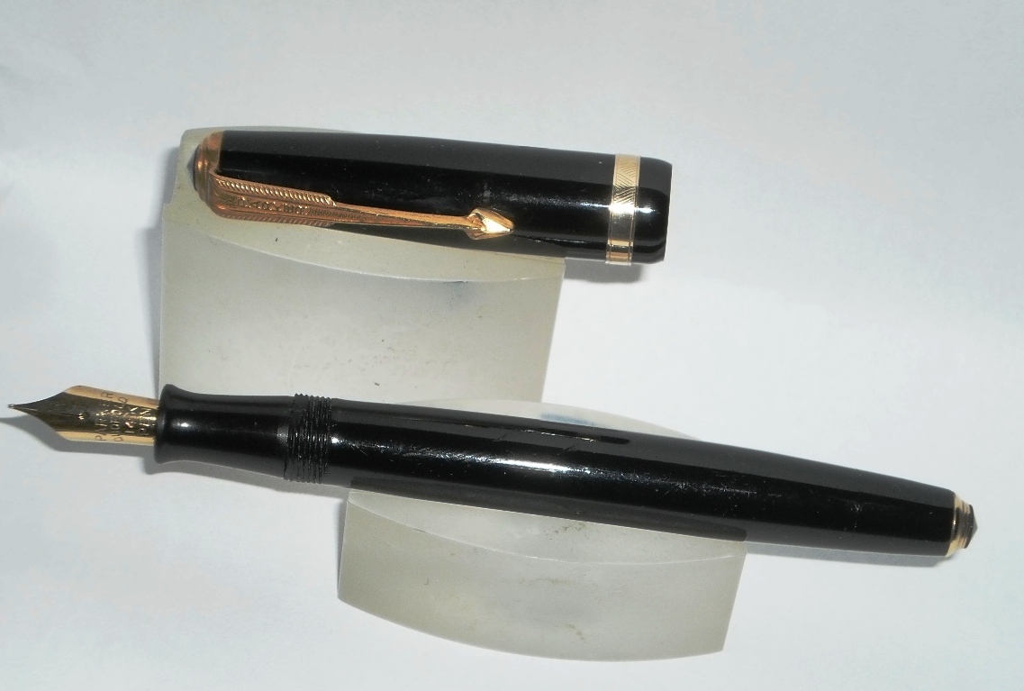 Foto di una penna Parker. Realizzazione in celluloide nera. Modello di produzione danese C. Olsen, simile alla Duofold Vacumatic, marcata Duofold. Contributo di Fabrizio Falchi, (utente forum fountainpen.it fab66).