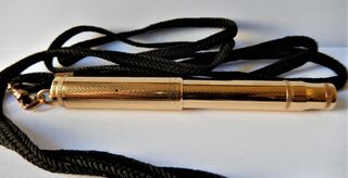 Photo of a pen produced by Parker. Model: Lucky Curve Pen N. 42. Filling system: button filler. With barleycorn band gold rolled overlay. Nib marked "Parker Lucky Curve Pen", also called The Midget.
