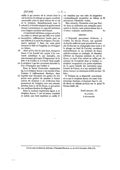 Brevetto per un dispositivo da inserire nella bocca di una boccetta di inchiostro per permettere di estrarre parte dell'inchiostro, analogo a quello che si trova su alcuni calamai moderni, con chiusura tramite sfera di vetro, analogo al meccanismo della boccetta della Gimborn.