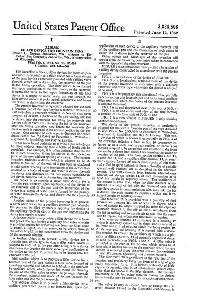 Brevetto per la costruzione della unità di caricamento a capillarità, sostanzialmente quella adottata sulla Parker 61. Riferimenti a nº US-2879744 e nº US-2935044.