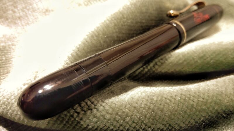 Foto di una penna Pelikan. Modello: Rappen. Caricamento a stantuffo. Realizzazione in celluloide nera. Versione successiva con caricamento a stantuffo. Contributo di Gustavo, (utente forum gfrico2000).